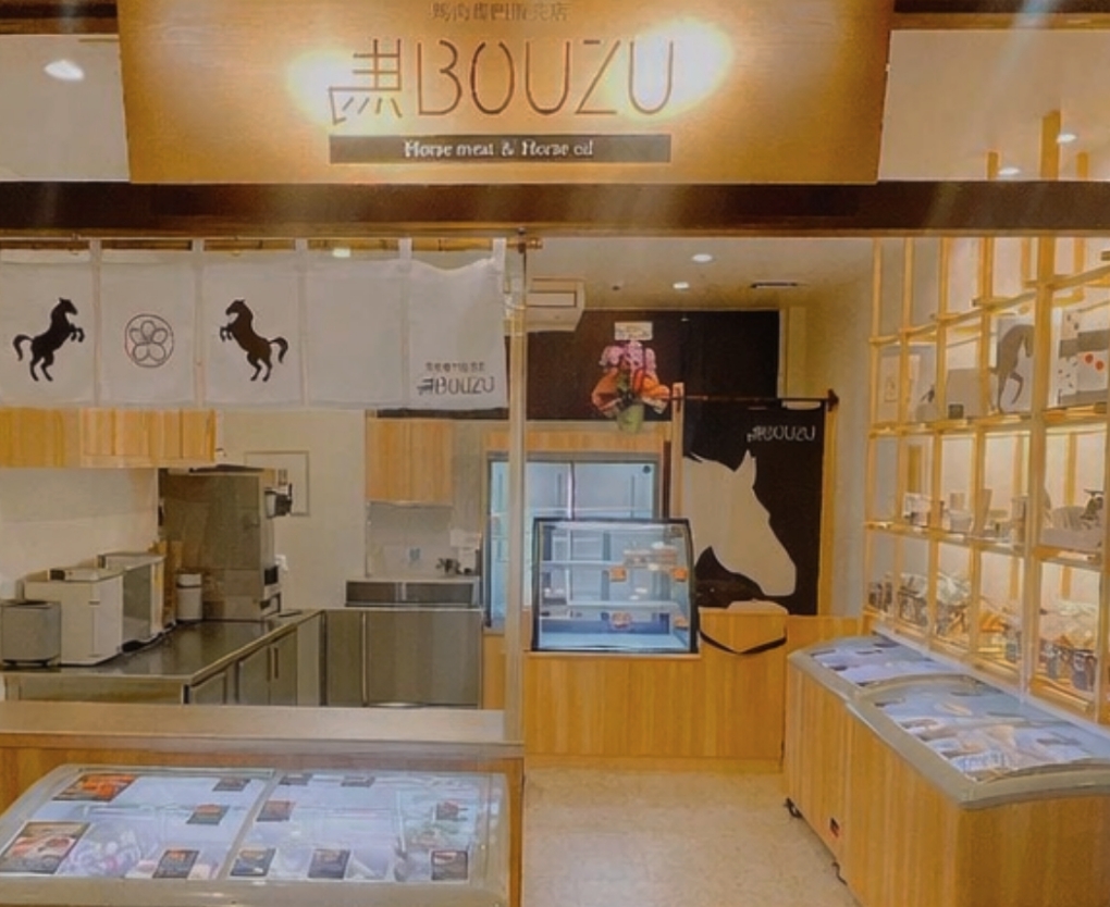 馬肉店「馬BOUZU」の店舗内にて、&NAGOMIの全商品をラインナップしております。